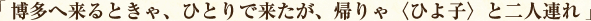 飯塚生まれの「銘菓」ひよ子が昭和三十二年二月に、福岡市の新天町横に進出。翌三月には、第十四回全国菓子大博覧会で総裁賞を受賞。ひよ子の評判は高まる一方でした。